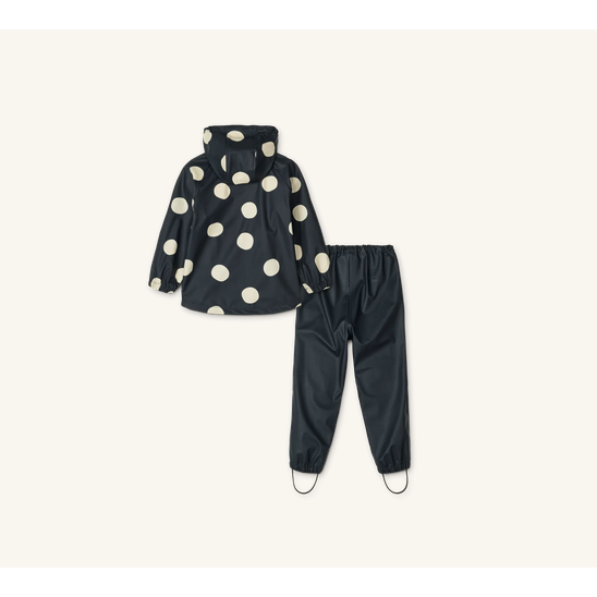Moby rainwear set from Liewood in the print white Mega dot.