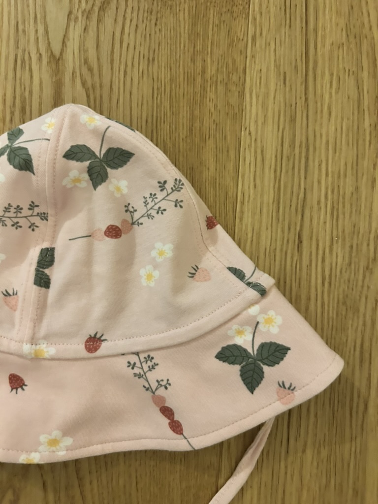 Süsser Polarn O. Pyret Sonnenhut in zartem Rosa mit verspieltem Print – ideal für sonnige Tage. Gefertigt aus einer weichen, elastischen Baumwollmischung, bietet er optimalen Tragekomfort und Schutz vor der Sonne.