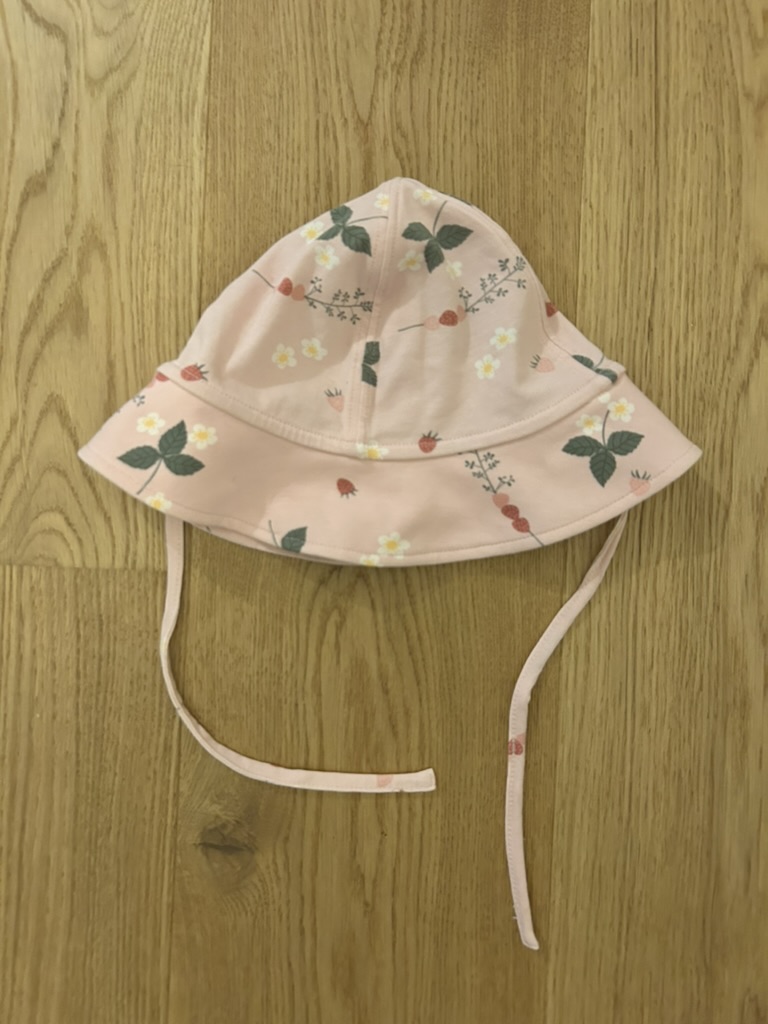 Pre-Loved Sonnenhut von Polarn O. Pyret | Rosa mit Print | Grösse: KU 48 (9–12 Monate)